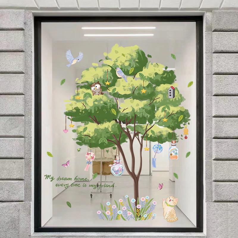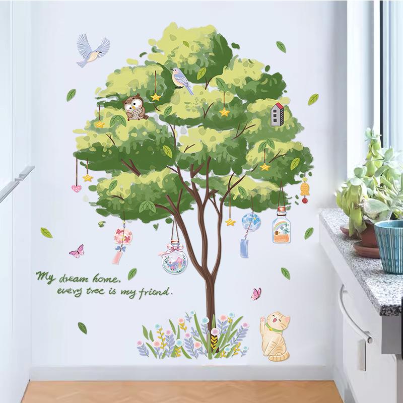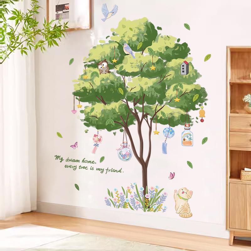 Простые и милые наклейки на стену для украшения детской комнаты, спальни, самоклеящиеся, теплые, креативные, наклейки с зелеными растениями, можно удалить