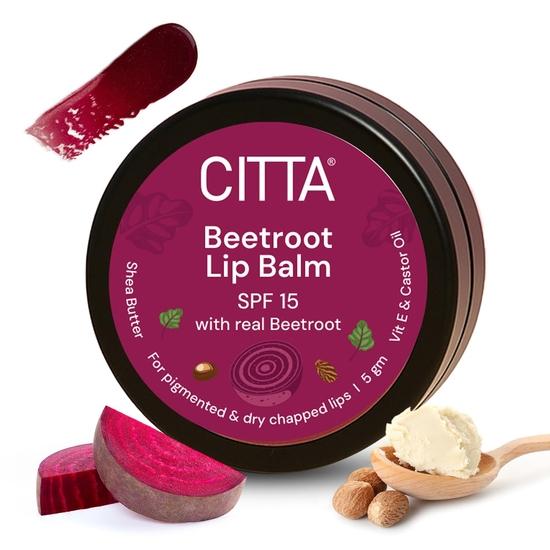 CITTA Бальзам для губ со свеклой SPF15 С натуральным розовым оттенком | Для пигментированных, сухих обветренных губ | С маслом ши, касторовым маслом и витамином Е | 5 г