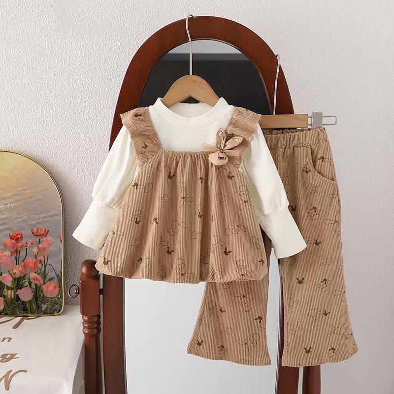 2023 Милый комплект-тройка с кроликом для маленьких девочек - Модная весенне-осенняя корейская мода