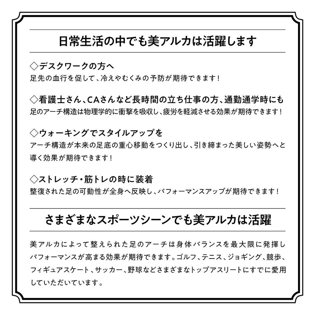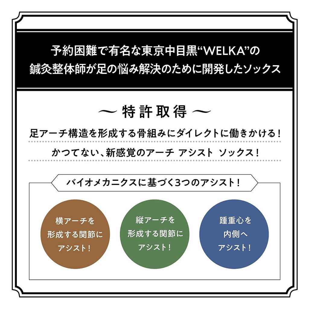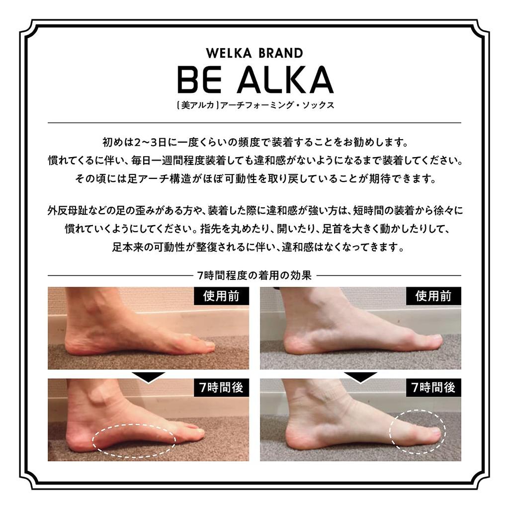 WELKA, популярная клиника акупунктуры и хиропрактики, завоевавшая доверие знаменитостей и моделей, разработала этот продукт на основе отзывов о проблемах стоп и тела, опираясь на различный опыт лечения и исследования.. Различные проблемы стопы и тела, такие как вальгусная деформация большого пальца стопы, молоткообразные пальцы, кривизна ног, нарушение осанки и перекос таза, а также локальные избыточные жировые отложения, могут быть вызваны ослаблением мышц, поддерживающих продольный и поперечный своды стопы, из-за недостатка физических упражнений и старения, что делает невозможным для стоп прочно опираться на землю, приводя к несбалансированной ходьбе.. Когда формируется нормальная дугообразная горизонтальная и вертикальная арка, пальцы ног можно использовать правильно, баланс всей подошвы стопы регулируется, и ходьба становится устойчивой.. Считается, что эта здоровая ходьба поддерживает движение туловища и таза и решает проблемы, начинающиеся со стоп.. Носки для формирования свода стопы Bi-Arka — это новый тип носков, разработанный после обширных исследований и с акцентом на свод стопы на основе биомеханики.. Уникальное вязание WELKA (патент заявлен) приближается и корректирует горизонтальные и вертикальные своды стопы, стремясь к правильной ходьбе. Ходя всей подошвой стопы с хорошо сформированным сводом, можно позаботиться о различных проблемах стоп.. Просто надевая эту обувь каждый день, вы можете заботиться о своем теле, занимаясь другими делами, а также она поддерживает движение вашего корпуса и таза, делая вас здоровыми и красивыми.