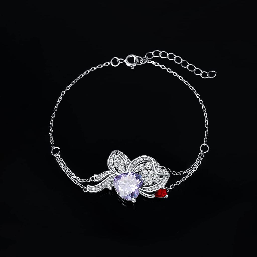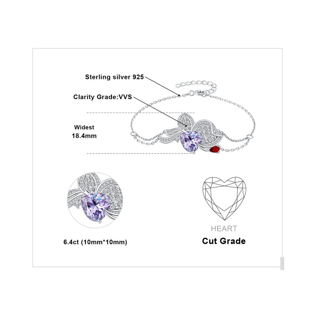 Butterfly Heart Purple Cubic Zirconia Adjustable Bangle Anniversary Engagement Celebration Accessory Popular Red Sterling Silver 925 Ladies Gift