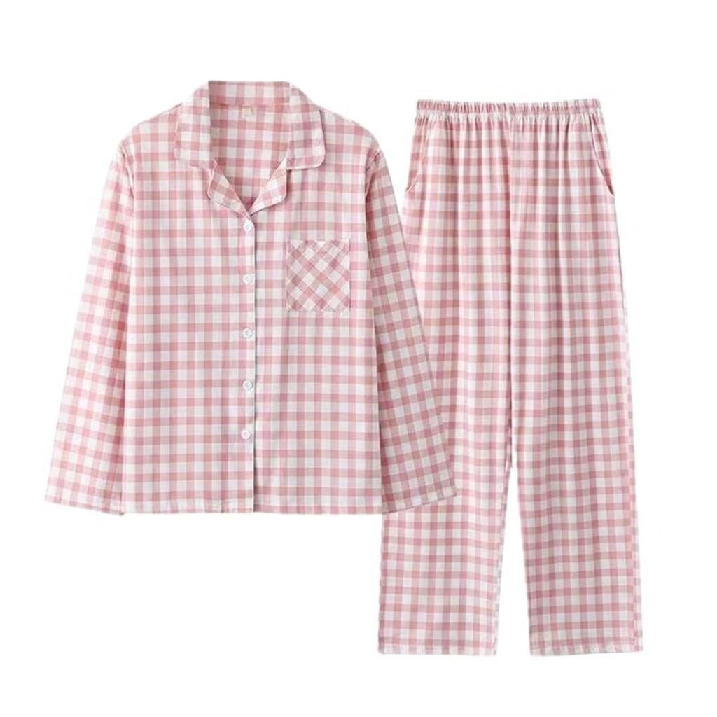 [Модная пижама с длинным рукавом для женщин] Простой и неподвластный времени ортодоксальный дизайн с застежкой спереди. Приятно к коже и может носиться людьми всех возрастов и стилей.. Отличная воздухопроницаемость и впитываемость влаги, умеренное сохранение тепла, удобно носить во время сна, позволяет хорошо выспаться. Комплект пижамы из топа и низа, который можно комфортно носить в течение длительного периода времени весной, летом и осенью. Не только весной и осенью, но и летом, когда включен кондиционер, его можно использовать с обогревом зимой, поэтому вы можете использовать его с комфортом круглый год независимо от сезона.