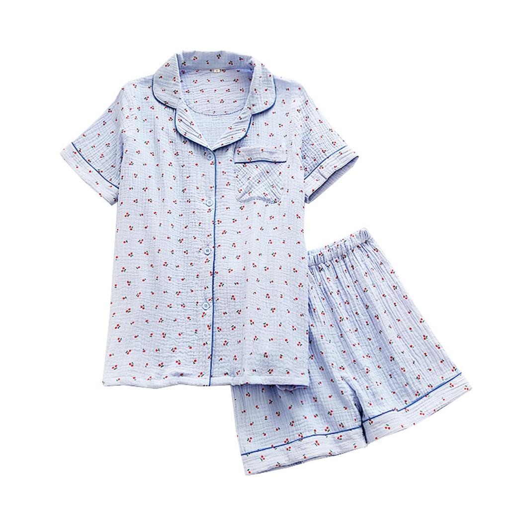 Летний короткий двухслойный верх и низ, дышащий, отводящий пот [GDenFrog] Женская пижама, домашняя одежда, рукава, шорты, марля, 100% хлопок, вишня, — купить товар онлайн с бесплатной доставкой до всему миру!
