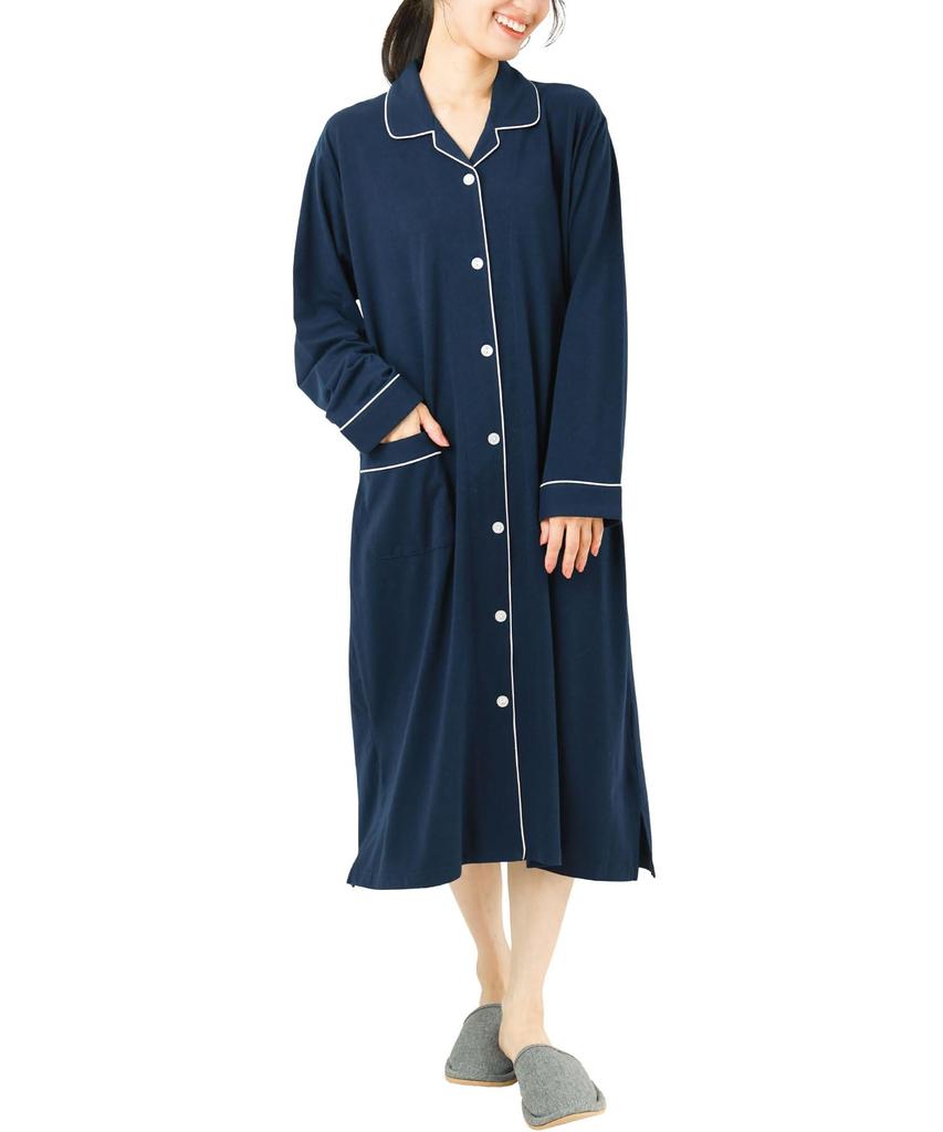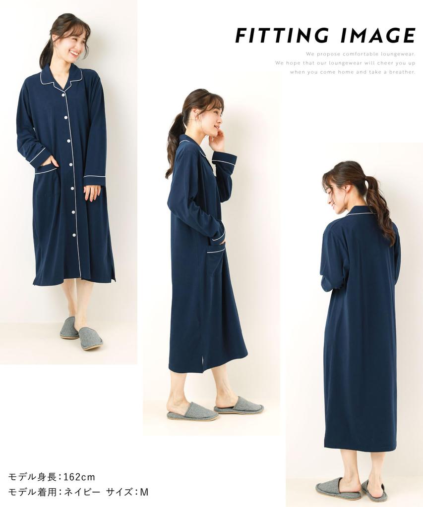 Ночная сорочка Пижама с длинным рукавом из эластичного хлопка спереди длинная Домашняя одежда для комнаты [Nishiki] Женщины, Цельная, Эластичная, Джерси, Смесовая, С разрезом, Длина,