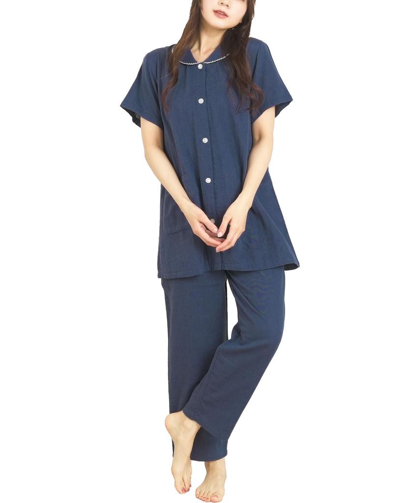 Короткий расчесанный двойной нежный спереди сверху и снизу длинный домашний костюм темно-синий однотонный [Nishiki] Женская пижама, рукава, лето, 100% хлопок, — купить товар онлайн с бесплатной доставкой до всему миру!