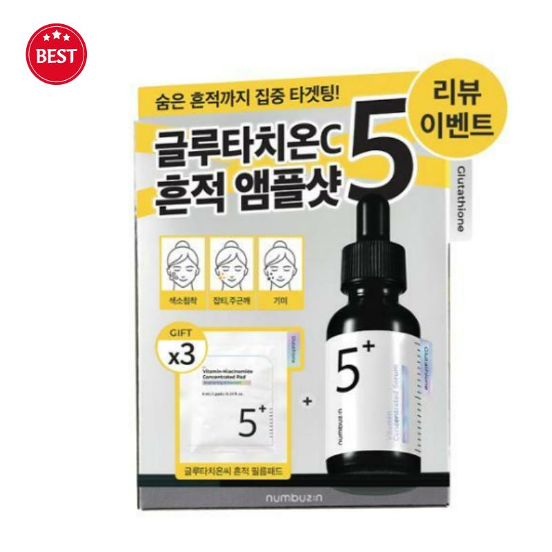 Numbersin Сыворотка для лица №5 с глутатионом и витамином С 30 мл (с 6 накладками в качестве бонуса)