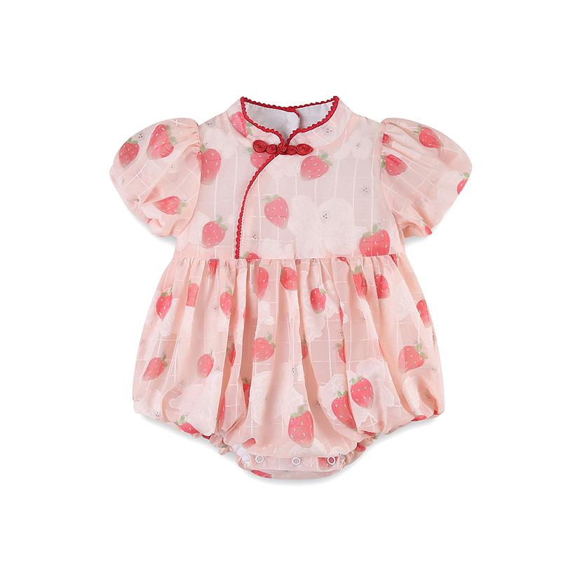 Летний детский ромпер с клубничным принтом на 2025 год - Треугольный комбинезон для ползания для девочки одного года