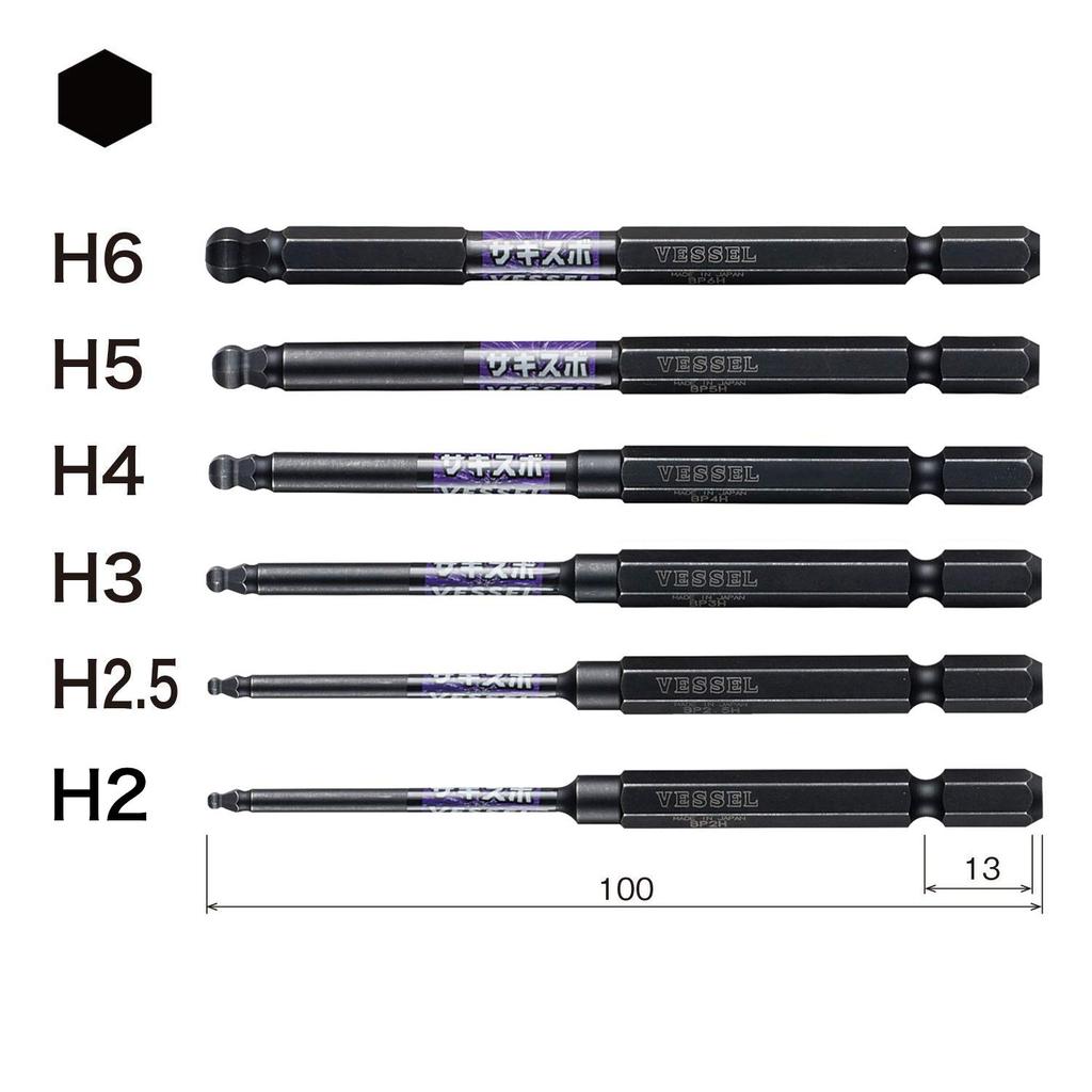 Набор бит для шариковой отвертки VESSEL, 6 штук (с держателем) SS16BP-6PSA