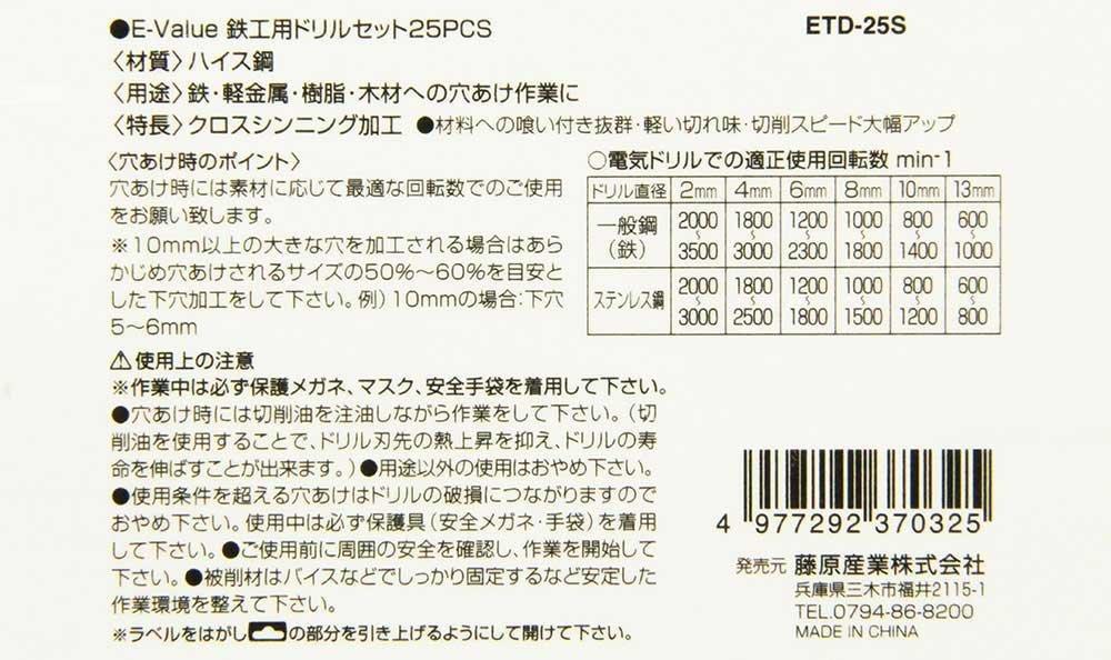 Набор металлических сверл E-Value с круглым хвостовиком, набор из 25 штук, ETD-25S