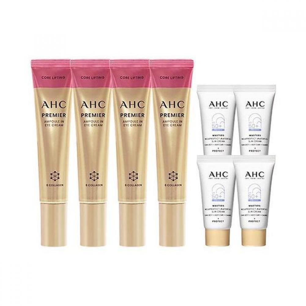 Крем для век AHC Сезон 12 содержит гиалуроновую кислоту, пептиды, коллаген и растительные экстракты, которые эффективны для увлажнения и эластичности кожи. Он также содержит успокаивающие ингредиенты, безопасные для чувствительной кожи вокруг глаз.. Водостойкий солнцезащитный крем содержит солнцезащитные компоненты (включая SPF) а также натуральные ингредиенты, такие как алоэ вера и экстракт зеленого чая, которые помогают успокоить и увлажнить кожу.