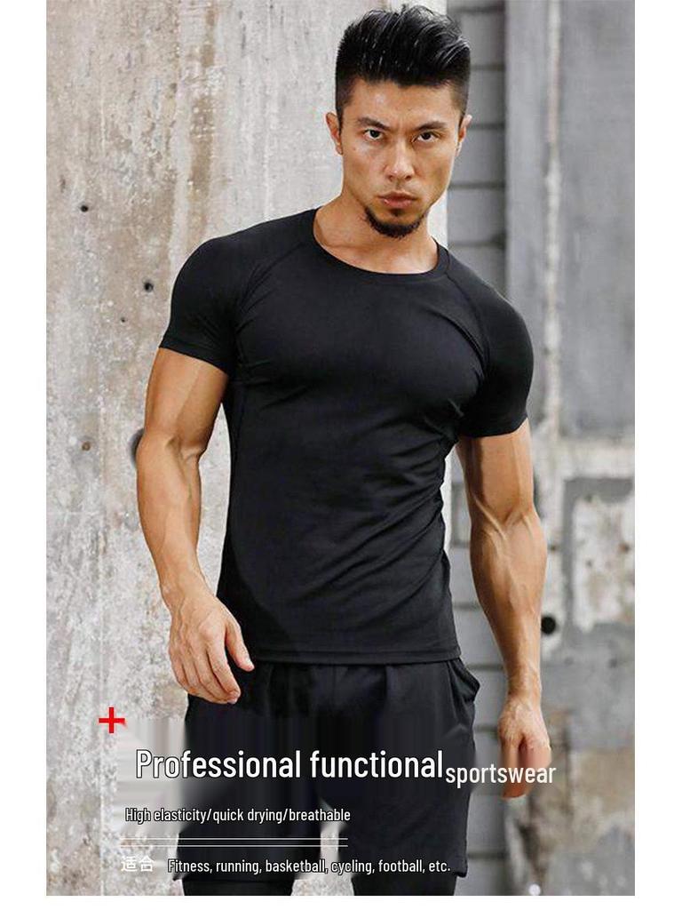 Мужская спортивная футболка с коротким рукавом, быстросохнущая, компрессионная