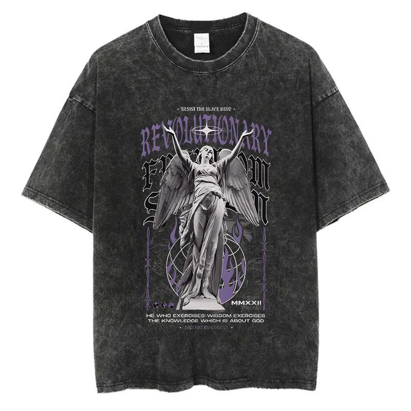 Мужская Мода Выстиранная Футболка Уличная Одежда Графический Принт Харадзюку Хип-Хоп Футболка Черный Короткий Рукав Хлопок Свободные Топы Футболки