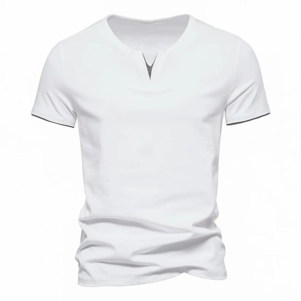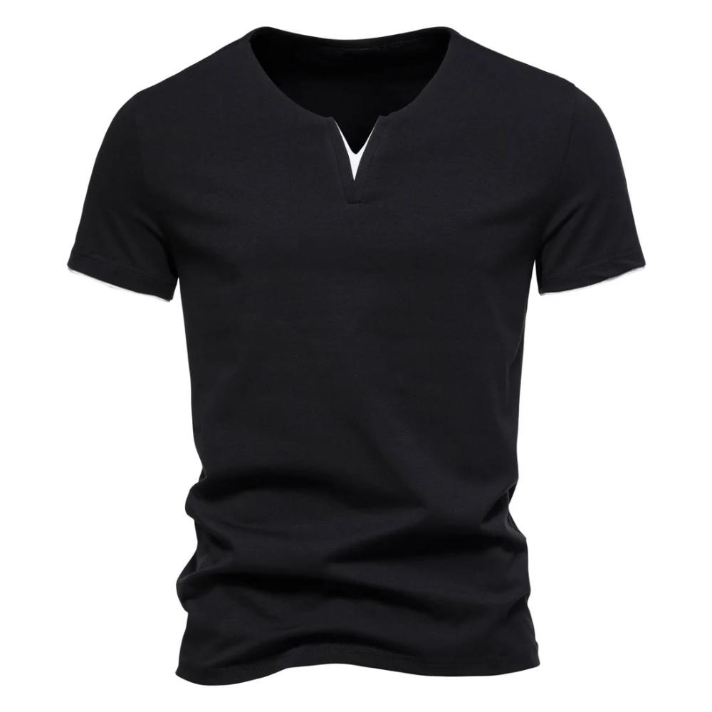 Летняя мужская однотонная хлопковая футболка с V-образным вырезом, облегающего кроя, дышащая, повседневная, уютная, классическая мужская одежда на каждый день