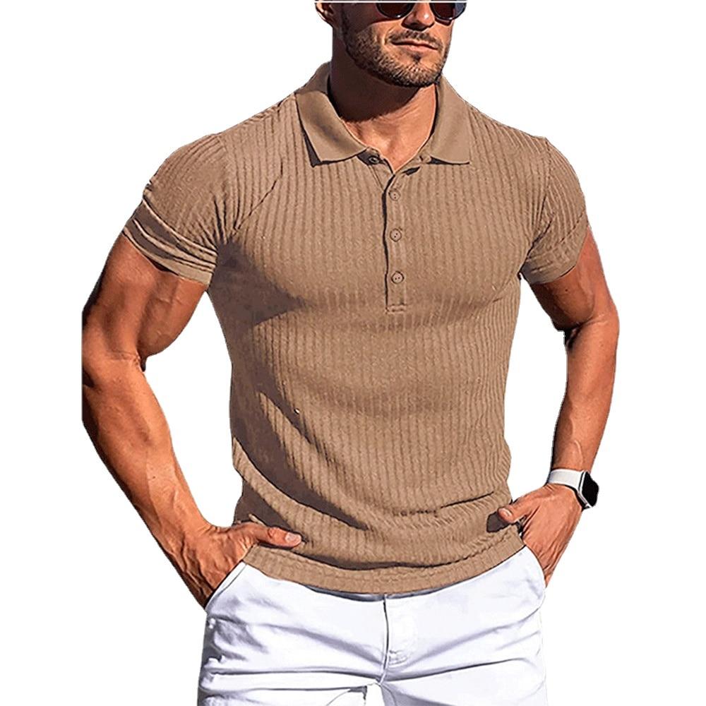 Летние мужские рубашки поло в сплошную полоску, эластичные, с коротким рукавом, с воротником-стойкой, мужские рубашки