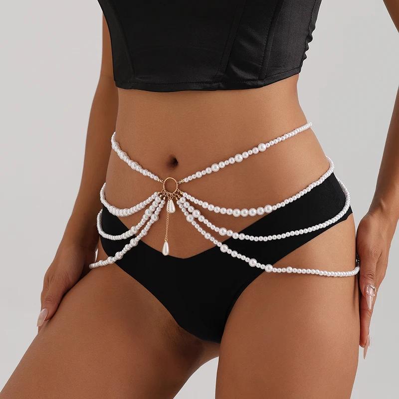 Многослойные цепочки на талию из жемчуга для женщин, имитация жемчуга, металлическое кольцо, пояс с кисточками, модные элегантные украшения для тела, аксессуары для одежды