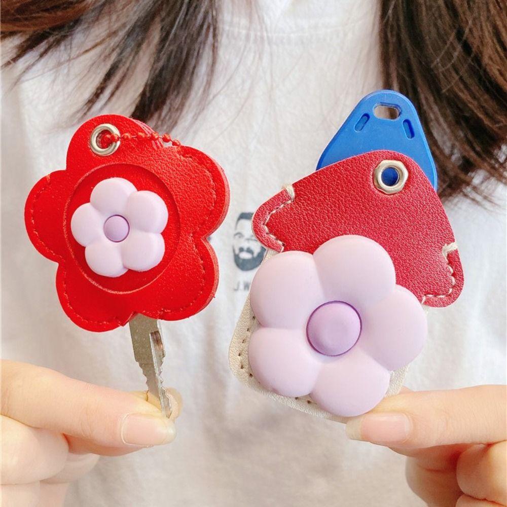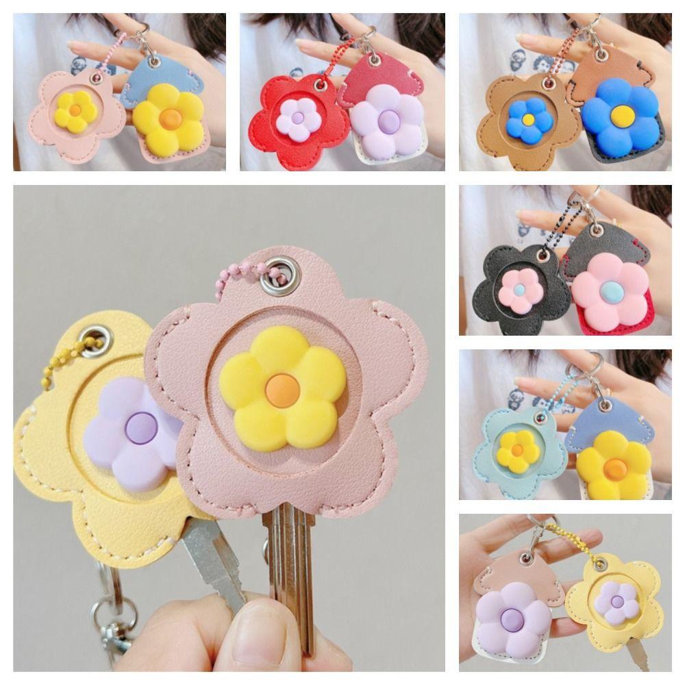 Креативный брелок для ключей в виде цветка, защитный чехол, колпачок для ключей в виде цветка, забавный ПУ чехол для ключей, для пары