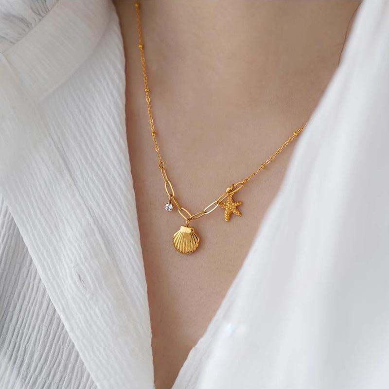 Роскошное золотое ожерелье с ракушкой, морской звездой и стразами, женская цепочка на ключицу, короткий стиль, ювелирное изделие