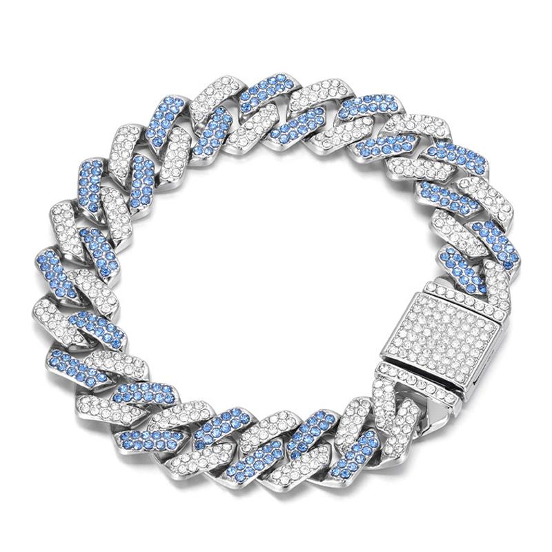 Браслет в стиле хип-хоп, блестящая кубинская цепочка, 14 мм, для женщин и мужчин, золотистого цвета, украшен стразами, панк-браслет, мужские украшения.