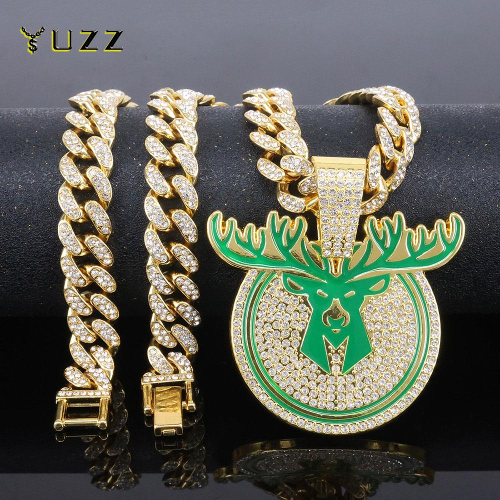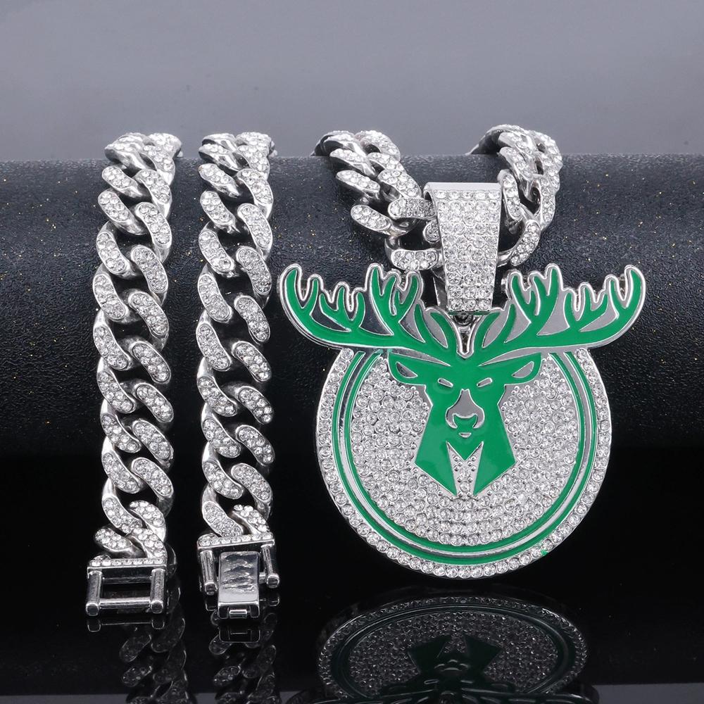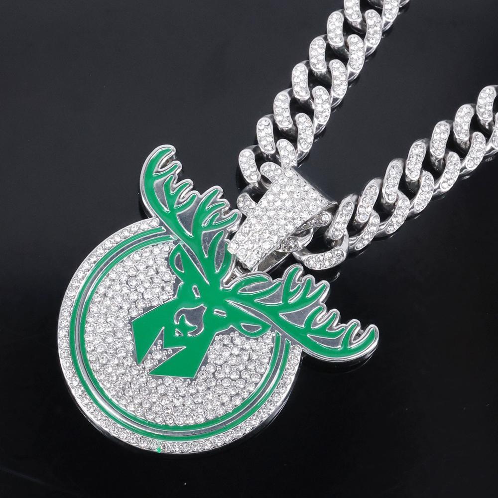 Хип-хоп ожерелье с подвеской в виде головы оленя, с 13-миллиметровой хрустальной кубинской цепочкой, хип-хоп, ожерелья с бриллиантами, мужские, женские, ювелирные изделия-амулеты с животными