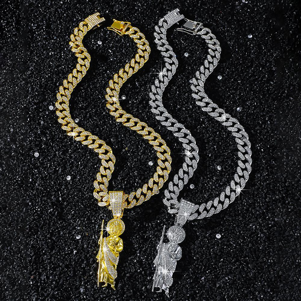 Хип-хоп Мужской Блестящий Ледяной Кристалл Майами Кубинская Цепь Ожерелье Для Женщин Сан Иуда 13мм Кубинская Цепь Религиозные Ювелирные Изделия Подвеска Подарок