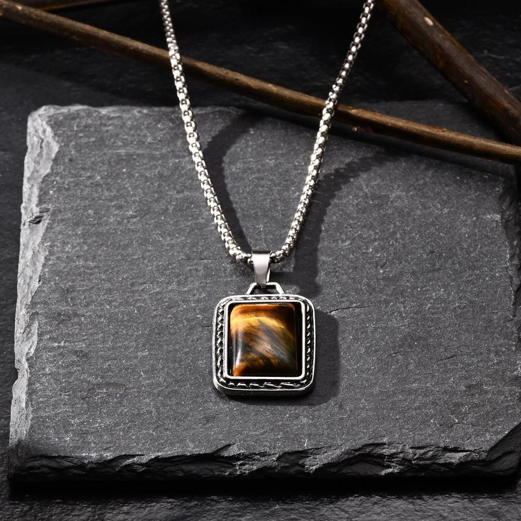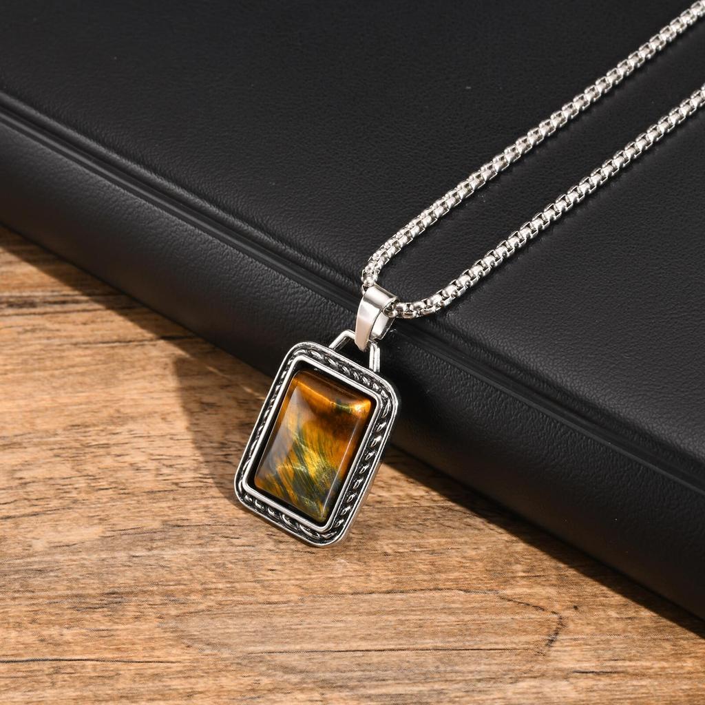 Vnox Геометрические Ожерелья с Подвеской в виде Прямоугольника из Камня Тигровый Глаз с Регулируемой Коробчатой Цепочкой, Простые Модные Квадратные Подвески