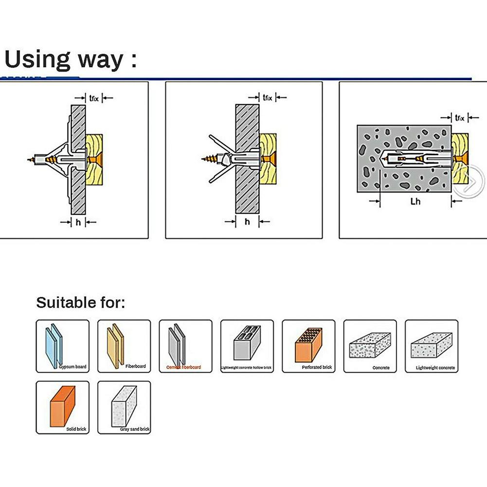 Эти гипсокартонные анкеры и саморезы идеально подходят для подвешивания выступов на довольно мягких гипсокартонах. Вы можете использовать этот комплект для фиксации жалюзи или полок, а ребра жесткого на пластиковых анкеровах гипсокартонного картонного не позволяют анкерам поворачиваться в отверстиях во время установки.