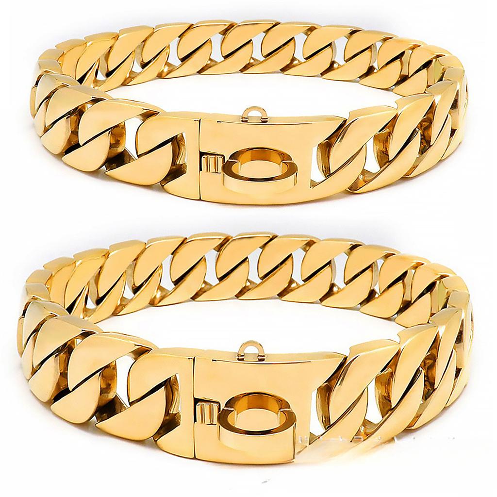 Литая толстая цепь из нержавеющей стали, золотое ожерелье-ошейник для собаки, титановая сталь для крупной собаки