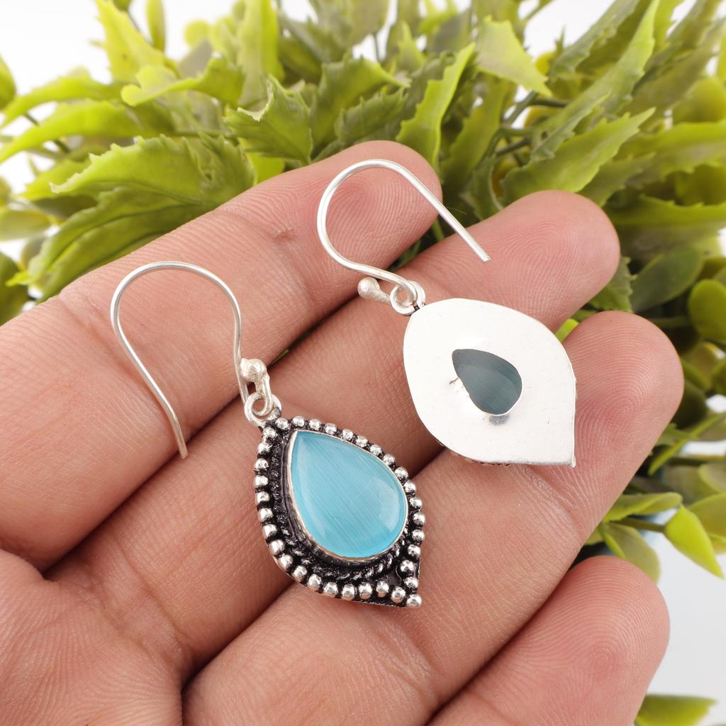 Серьги с камнем «кошачий глаз» синего цвета, Ювелирные серьги из стерлингового серебра 925 пробы, Серьги ручной работы, Балансирующие ювелирные украшения, Подарок для женщин