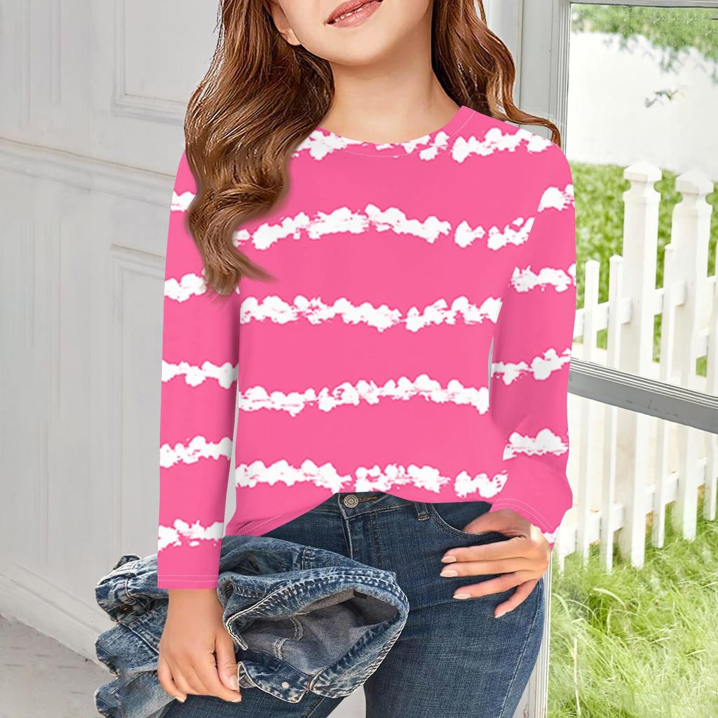 Футболки с длинным рукавом для девочек, детские осенние топы, с круглым вырезом, с принтом, базовые футболки 3-9 лет