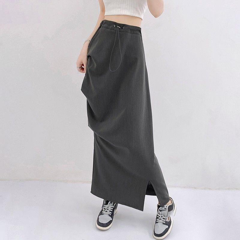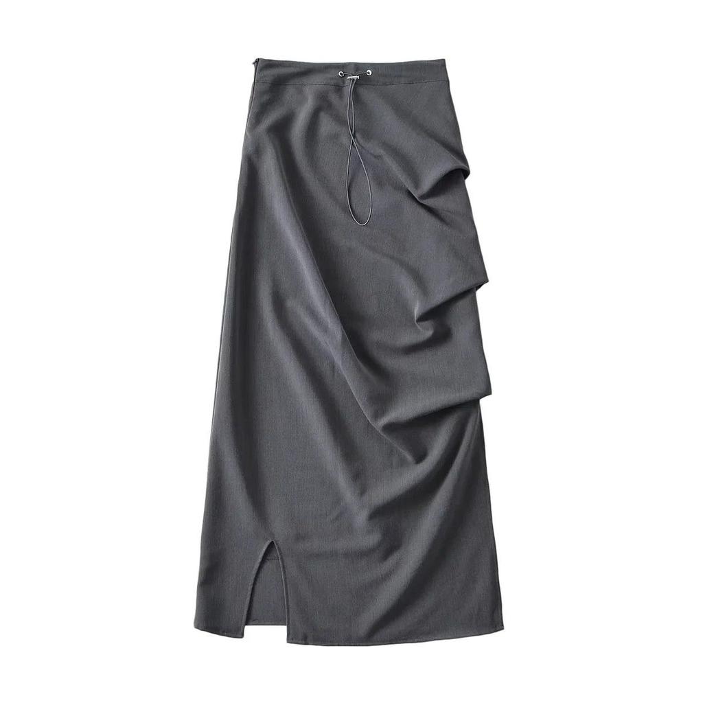 Американская плиссированная юбка-трапеция миди для женщин - Весенне-летняя повседневная юбка-макси с разрезом с высокой талией
