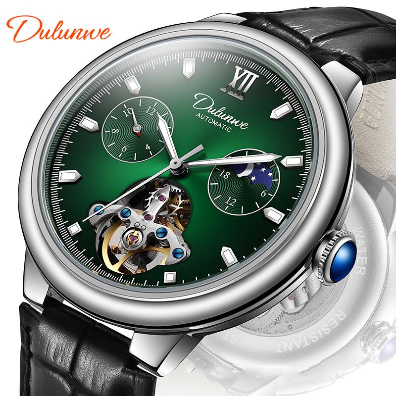 Мужские механические наручные часы 3 АТМ водонепроницаемые автоматические часы фаза Луны турбийон спортивные часы