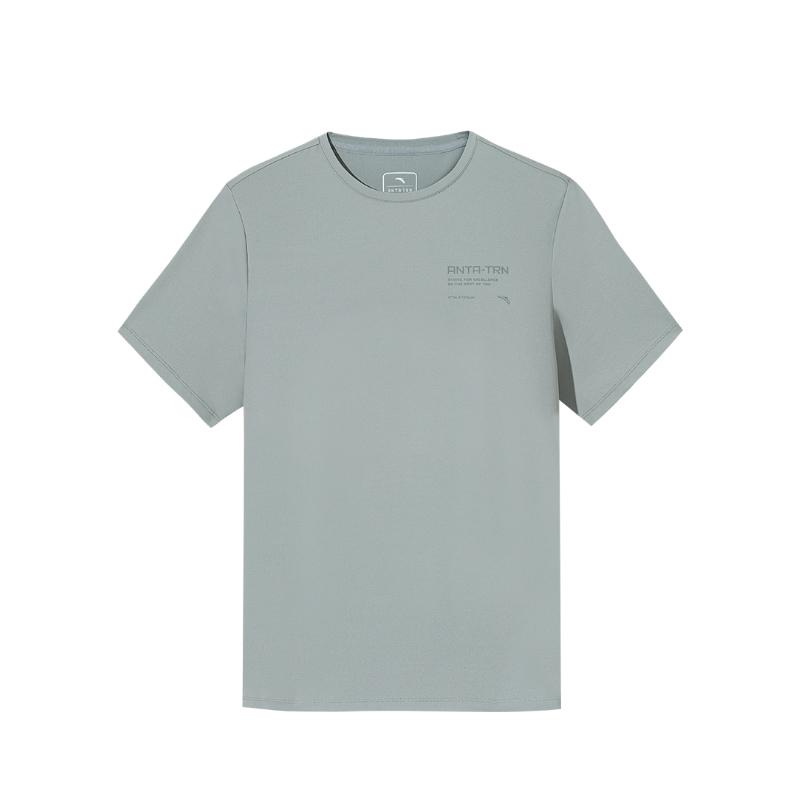 Anta Простая Универсальная Однотонная Футболка с Круглым Вырезом, Удобная Повседневная Дышащая, с Коротким Рукавом, Мужские Топы, Светло-зеленый 152537110-2