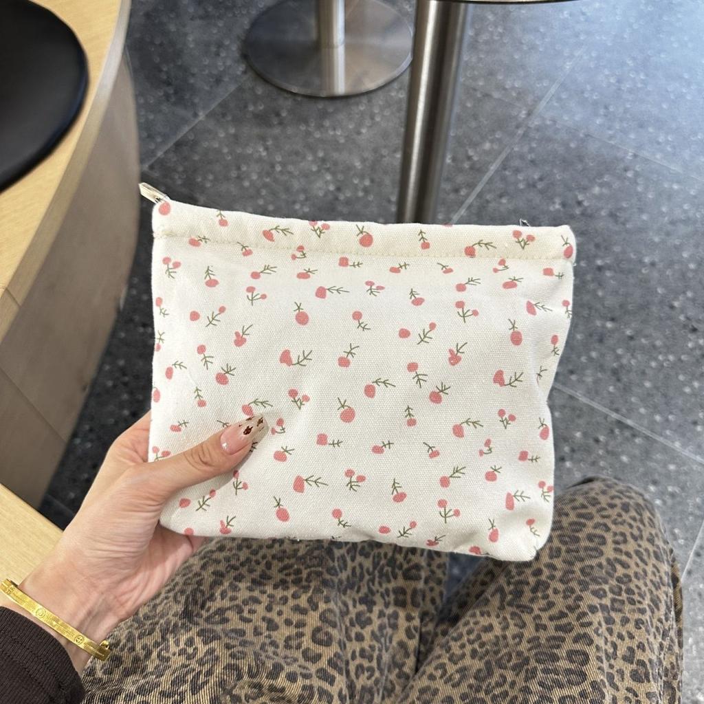 Милая маленькая холщовая косметичка с цветочным принтом, женская простая портативная сумочка большой вместимости для средств по уходу за кожей