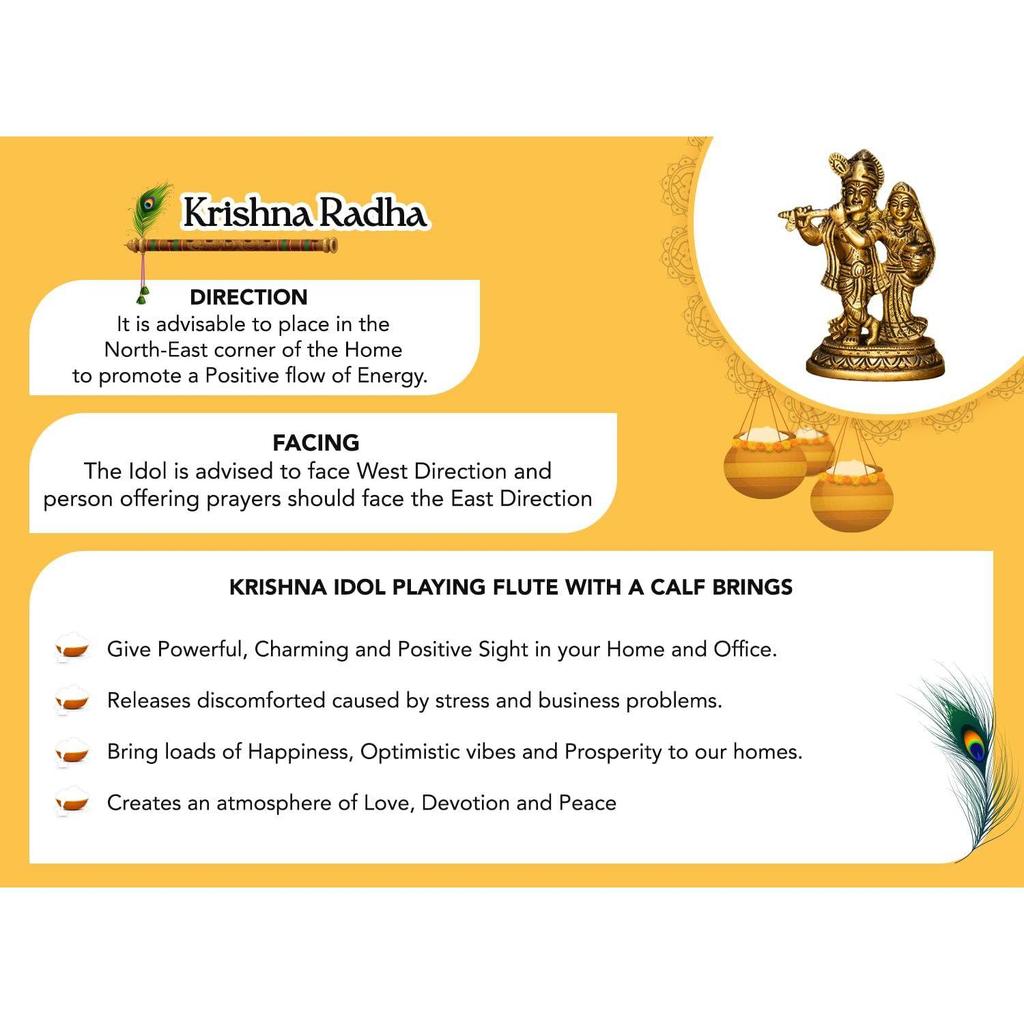 ИДЕАЛЬНОЕ РАСПОЛОЖЕНИЕ И НАПРАВЛЕНИЕ: Идеальное место и направление для этой прекрасной латунной мурти Радхи Кришны, представляющей божественную пару, — в комнате для пуджи.. Рекомендуется размещать мурти Радхи Кришны в северо-восточной части дома.. Считается, что такое расположение привлекает положительные энергии, связанные с любовью, миром и счастьем.