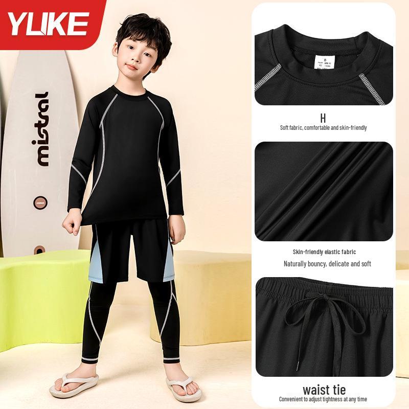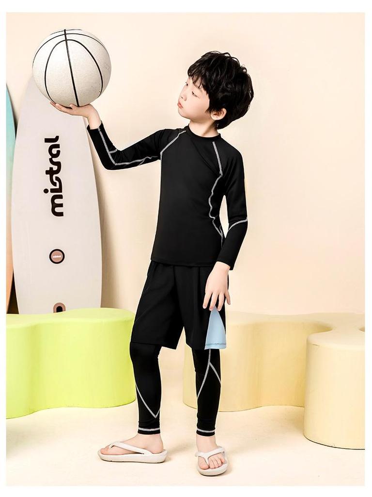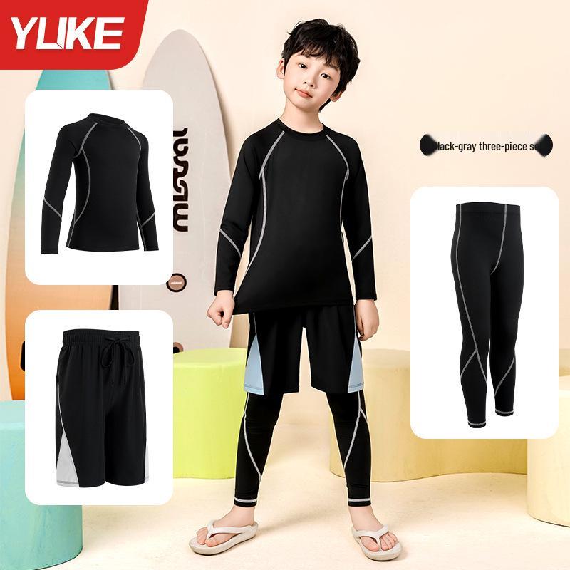 Этот быстросохнущий спортивный костюм-двойка для мальчиков предназначен для различных видов спорта, таких как баскетбол, футбол и бег.. Изготовленный из высококачественного полиэстера, он обеспечивает отличные влагоотводящие и быстросохнущие свойства, сохраняя вашего ребенка в комфорте во время интенсивных тренировок.. В комплект входит облегающий, эластичный крой, который идеально подходит в качестве базового слоя, обеспечивая оптимальную поддержку и свободу движений.. Идеальный для юных спортсменов, этот набор предлагает стильный и функциональный вариант как для тренировок, так и для игр.