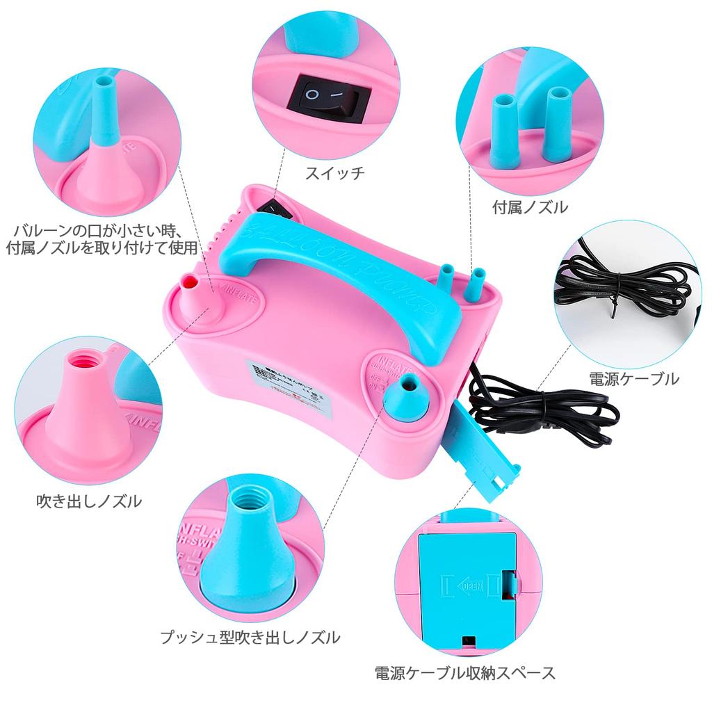 [Надуватель только для шаров] Это воздушный насос только для шаров, используемый для надувания шаров. Это незаменимый предмет для вечеринок, так как он позволяет легко подготовить большое количество воздушных шаров.. Он надувается за 3 секунды, поэтому экономит время, и ваши руки не устанут.. Воздух выходит из двух отверстий, поэтому можно надувать два шарика одновременно. Это полезно для различных случаев, таких как дни рождения, празднования открытия магазина, сдача экзаменов, поступление в школу, свадебные юбилеи и многое другое!