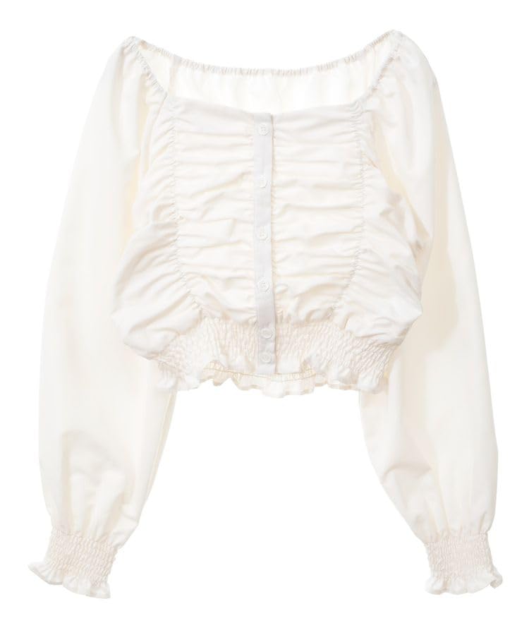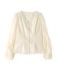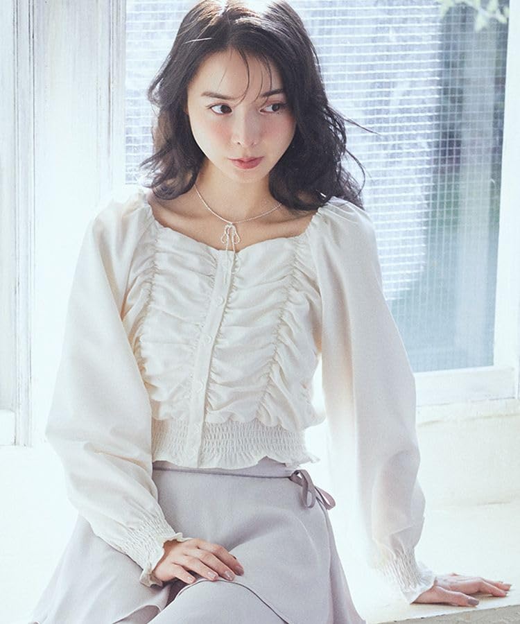 Музыкальная повседневная персиковая блузка со сборками для женщин [Земля и экология], молочно-белая
