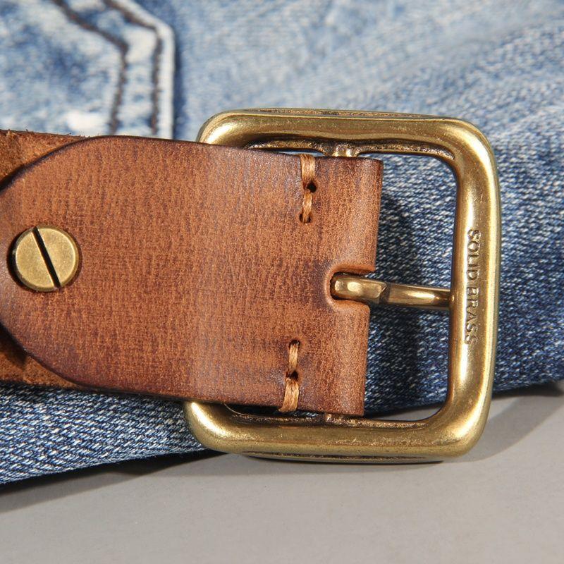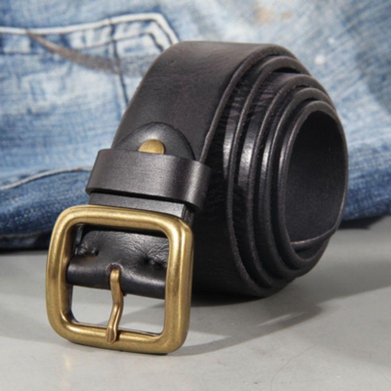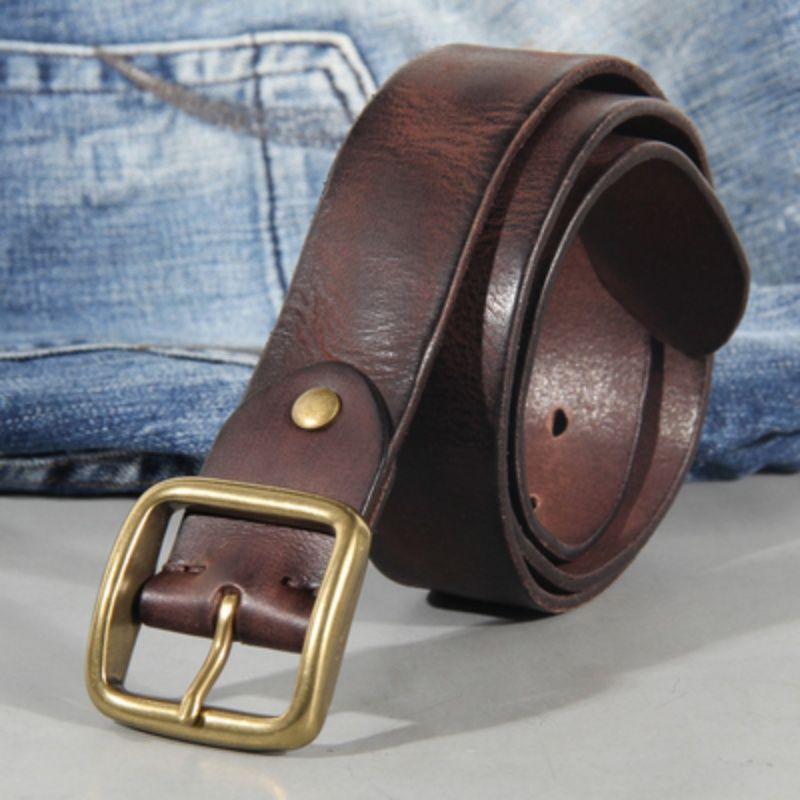 Ретро Медная Пряжка Мужской Ремень Выстиранные Джинсы С Натуральной Кожей Модная Пряжка-Штырь Мужской Ремень из Коровьей Кожи Первого Слоя Натуральный