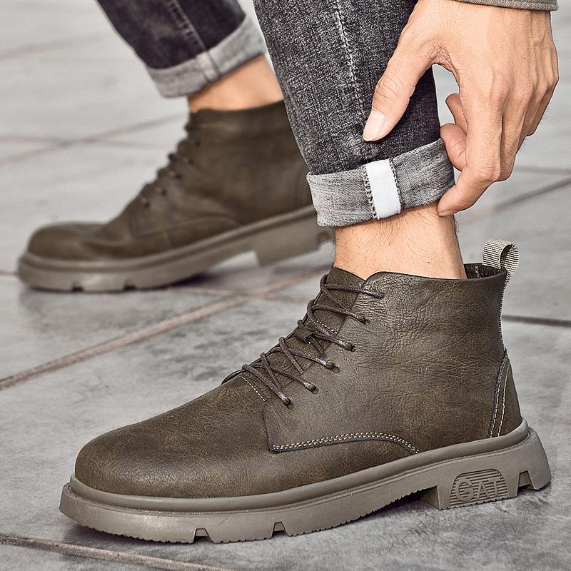 Мужские ботинки Мартин с ручной царапиной, мужская обувь, весенне-осенние ботинки, мужские ботинки средней высоты, британские высокие короткие ботинки, повседневная рабочая обувь