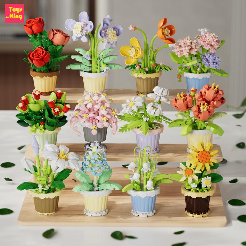1 шт. Мини-горшок для цветов-суккулентов, строительные блоки, имитация цветка, сборка кирпичной модели, детские игрушки, коллекция украшений для дома, подарок