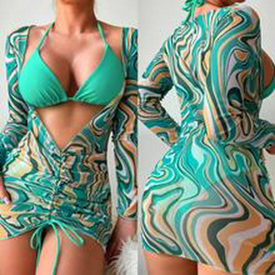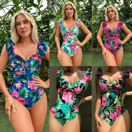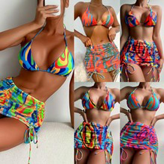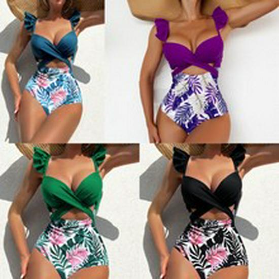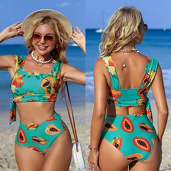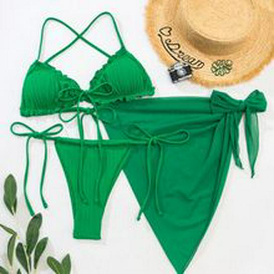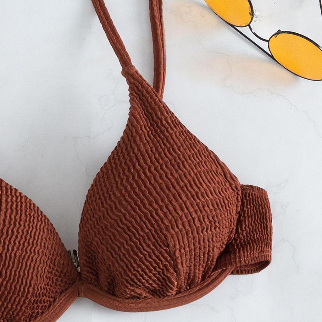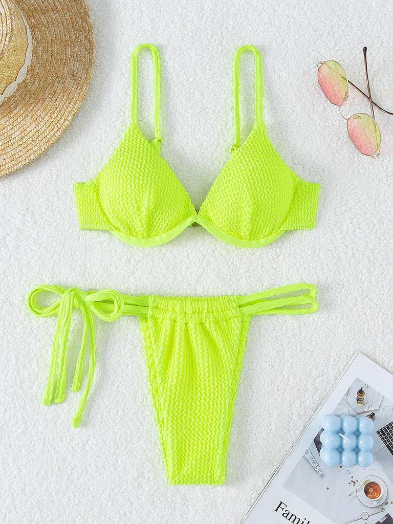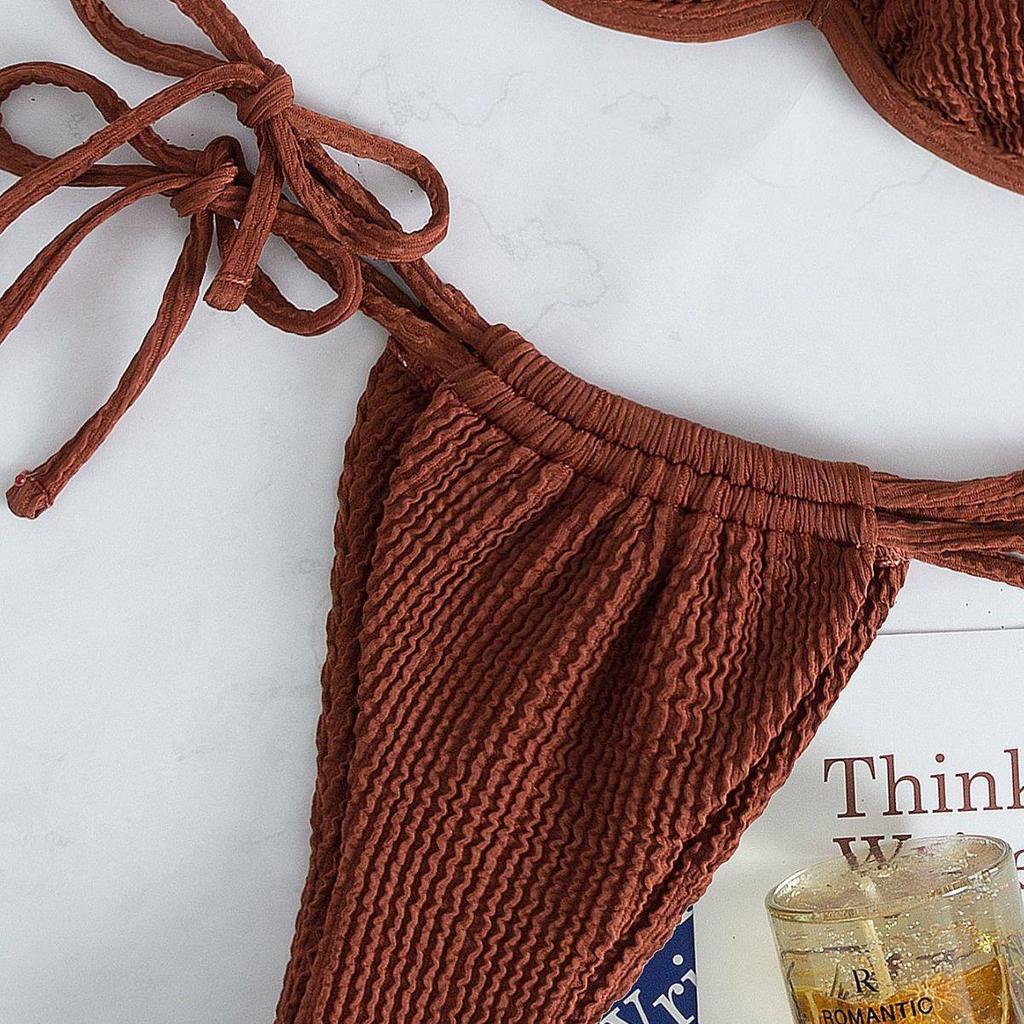 2025 Женский европейский и американский рубчатый купальник бикини - Однотонный, Сексуальный летний купальник