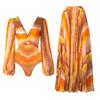 Комплект слитного купальника с длинными рукавами и V-образным вырезом - Европейский и американский принт для приморского отдыха