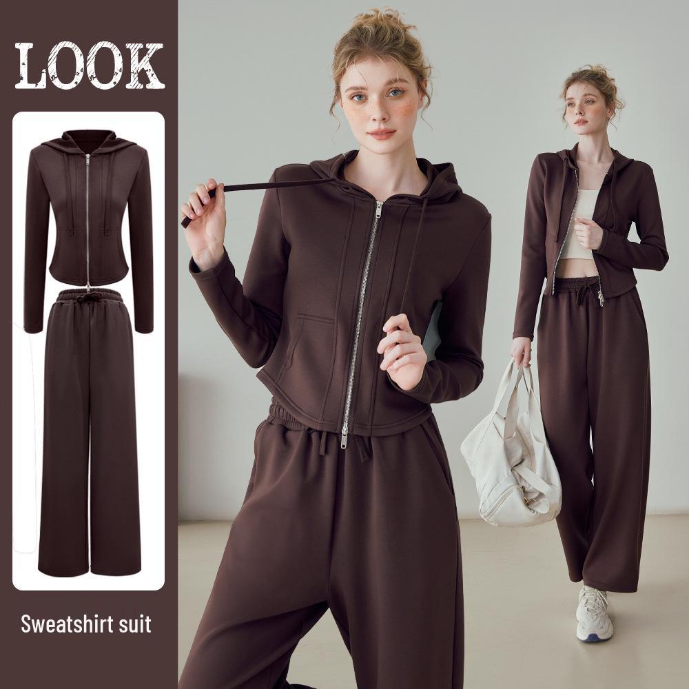 Женский худи для йоги с капюшоном и брюки широкого кроя, комплект из двух предметов - Теплый и удобный — купить товар онлайн с бесплатной доставкой по всему миру!