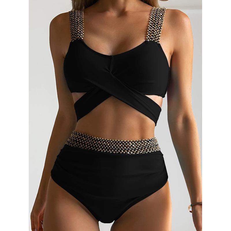 Сексуальные однотонные бикини, комплект из 2 предметов, женский облегающий раздельный купальник с открытой спиной и высокой талией, для отпуска, пляжа, новая летняя купальная одежда