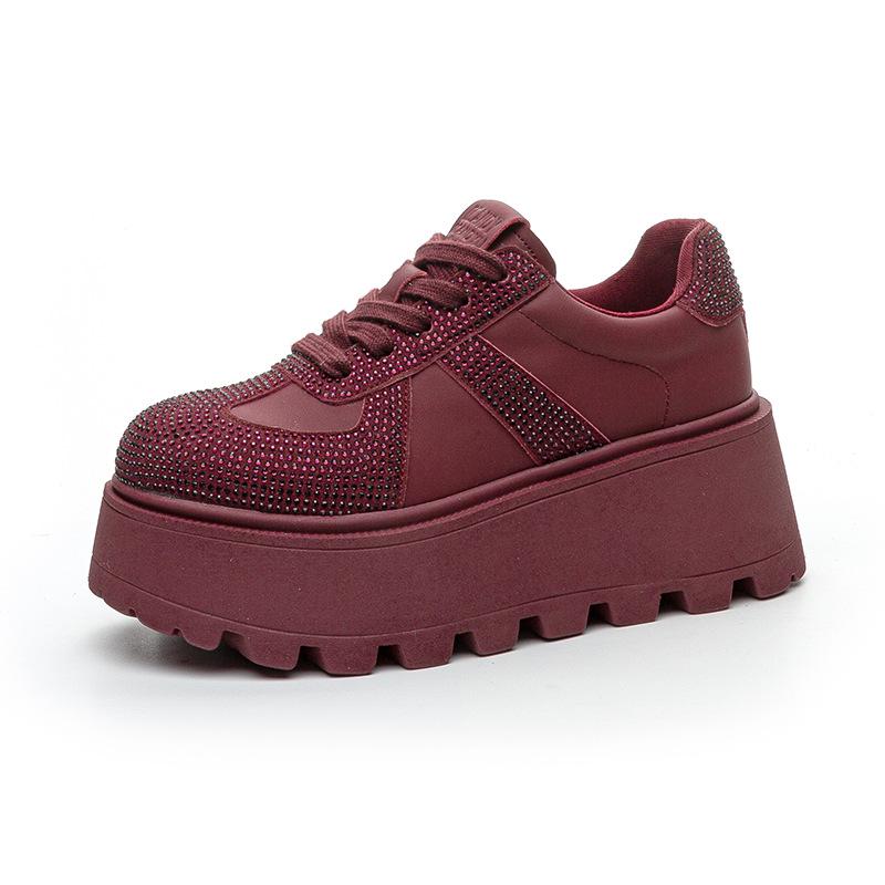 Dexun обувь платформа пружина увеличение высоты женская ретро матовая кожа плюс стразы повседневная мода спортивные кеды женская обувь