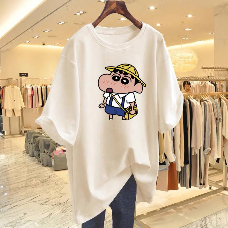 Хлопковая футболка с принтом, с коротким рукавом, женская, летняя, новая, свободного кроя, большого размера, с мультяшным принтом, топ, базовая футболка для женщин