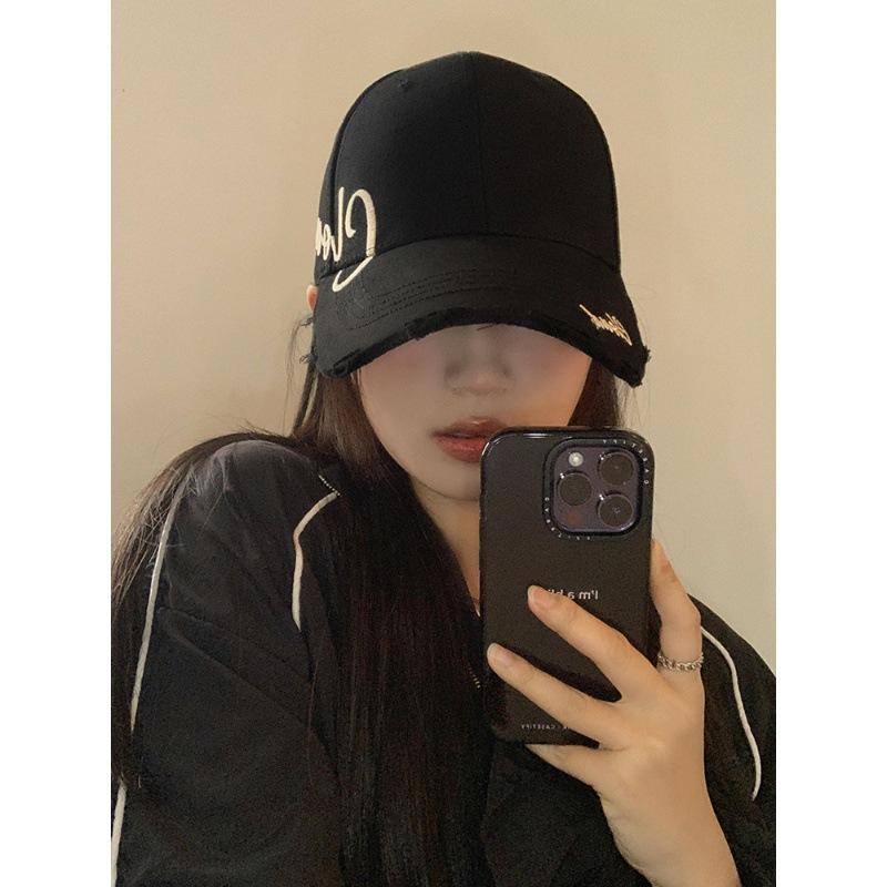 Кепка бейсболка черная с вышивкой букв женская летняя с широкими полями и жестким верхом, для большого обхвата головы, визуально уменьшающая лицо, маленькая шляпа