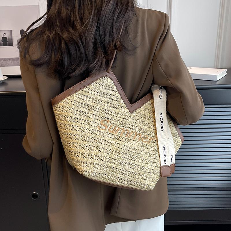 Соломенная сумка женская большой вместимости 2025 новая летняя универсальная на плечо плетеная текстурная популярная сумка-тоут — купить товар онлайн с бесплатной доставкой по всему миру!