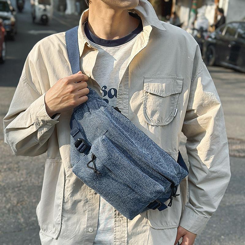 Сумка из выстиранного денима, легкая повседневная мужская сумка, спортивная сумка через плечо, спортивная модная сумка для велоспорта, трендовая нагрудная сумка