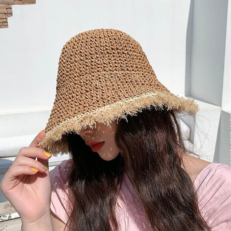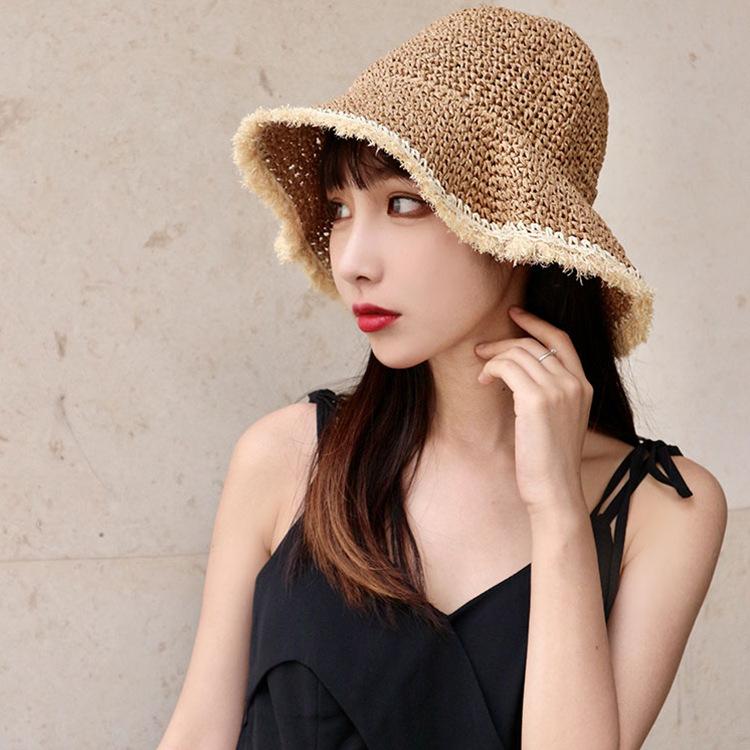 Соломенная шляпа женская летняя пляжная шляпа от солнца инс универсальная складная шляпа от солнца маленькая свежая шляпа-ведро